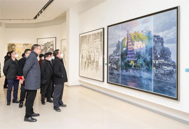 代江在致辞中向莅临开幕式的领导、嘉宾们表示衷心的感谢,同时他强调此次展览在各兄弟省市(自治区)的勠力合作下,搭建起长江流域文化艺术交流走廊,必将深化长江文化发展合作机制,催生出更多展示大好河山动人画卷、展现大美华夏迷人魅力、讴歌时代辉煌气象的文艺精品,助力长江经济带高质量发展,为全国社会主义事业的繁荣发展添砖加瓦!让全国各地的朋友们走进九龙美术半岛、爱上九龙坡!