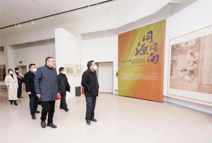 为深入学习宣传贯彻习近平新时代中国特色社会主义思想和党的二十大精神,贯彻落实习近平总书记关于文化文艺工作的重要思想,积极促进长江流域文化艺术交流,构建长江流域文化标识与共同体,全面推进长江流域文化事业和文化产业的繁荣发展,努力开创区域发展与艺术深入结合的新格局,进一步协调物质文明与精神文明发展水平,助力新时代中国式现代化,由中国美术家协会、中共重庆市委宣传部指导,重庆市文化和旅游发展委员会、重庆市文学艺术界联合会、中共重庆市九龙坡区委员会和九龙坡区人民政府主办,重庆市美术家协会、重庆市九龙坡区文化和旅游发展委员会、重庆九龙半岛开发建设有限公司承办的“2022同源·同向——长江流域十三省市自治区美术作品邀请展”在重庆当代美术馆盛大开幕。