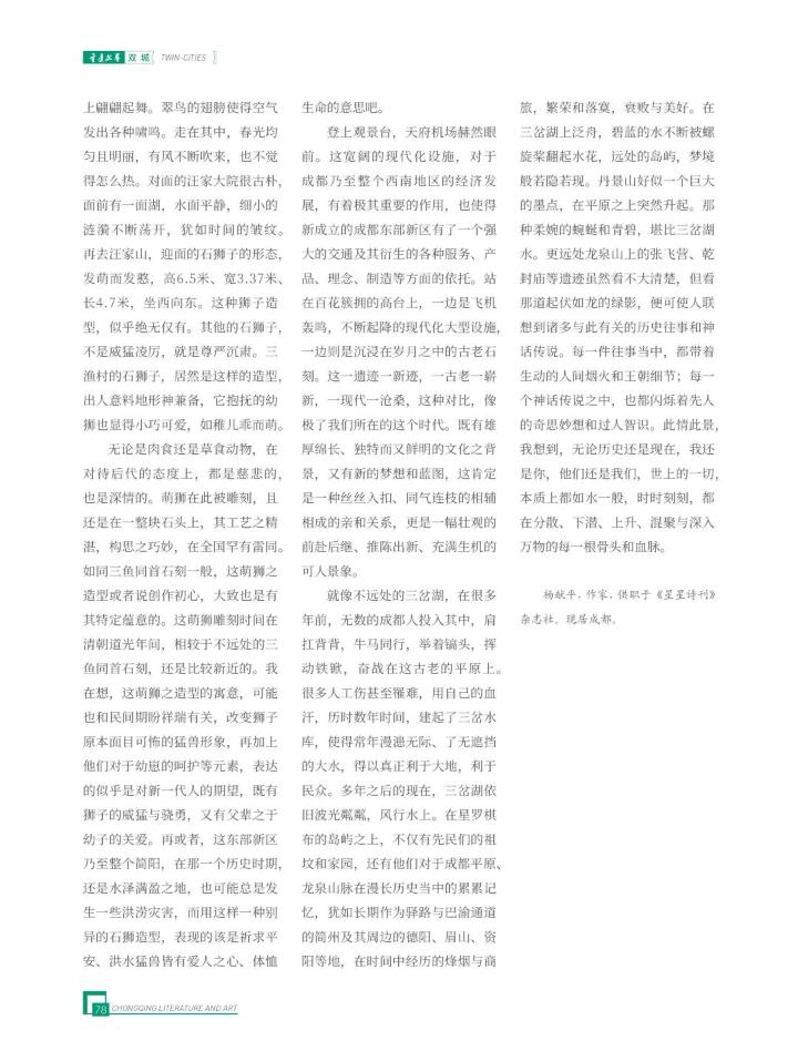 杨献平,作家,供职于《星星诗刊》杂志社。现居成都。