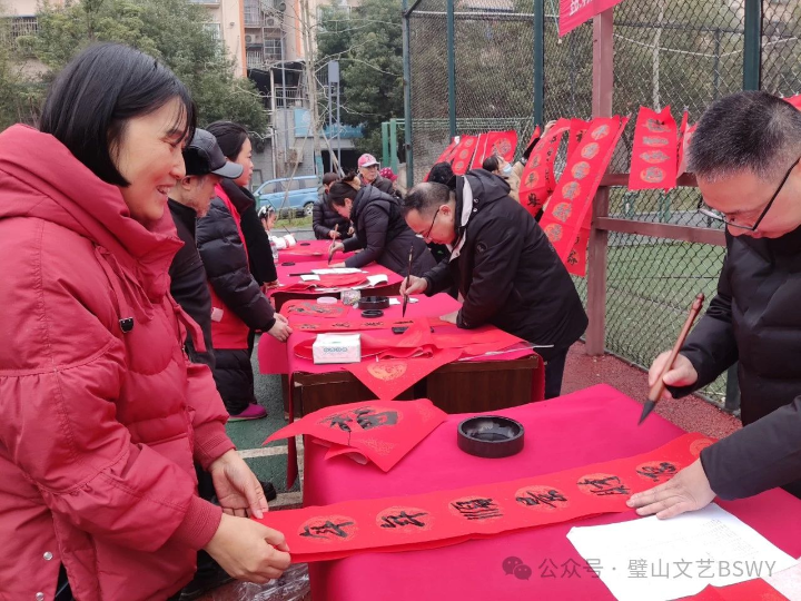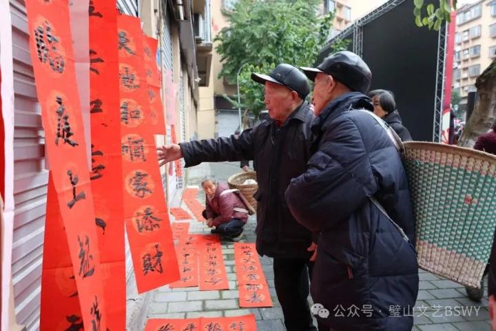 据悉,连日来,璧山区文联组织书法家分别在丁家街道龙安村村委会、璧泉街道华龙社区、福禄镇新街广场、来凤街道新华二街等地开展了“迎新春送祝福”写春联剪窗花文艺志愿服务活动。