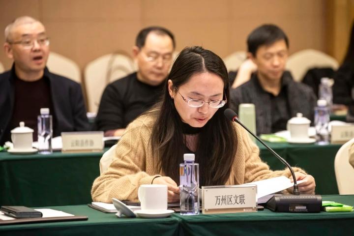 来自云阳县、万州区、开州区、奉节县、巫山县、巫溪县等区县文联负责人围绕调研主题作了交流发言,分享了他们在建设新时代文化强市,文艺助力乡村振兴、助推成渝地区双城经济圈建设和长江国家文化公园建设等国家发展战略和重大国家文化工程,文联延伸服务手臂,服务“文艺两新”以及全面深化改革等方面的经验和体会,交流了基层文艺文联工作面临的机遇与挑战、存在的问题与困惑,同时给市文联下一步工作也提出了中肯的意见和建议。