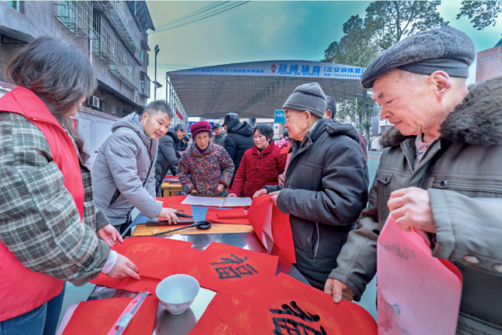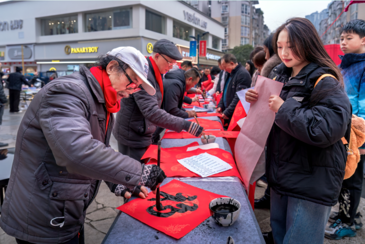 活动中,区文联组织了近30余名书法、绘画、摄影、曲艺方面的专业人士为大家写“福”送“春联”、画“新年愿景”、表演“曲艺”、定格“美好瞬间”,市民排队领取,脸上洋溢着幸福的笑容,现场充满温馨与和谐,展现了传统文化与现代社会的完美融合。